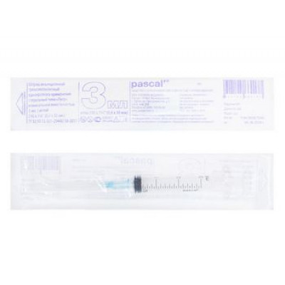 ПАСКАЛЬ ШПРИЦ 3-Х КОМП. 3МЛ. С ИГЛОЙ 23G 0,6Х30ММ. №1 [PASCAL]