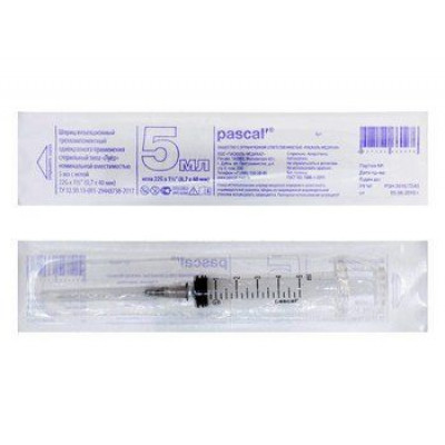 ПАСКАЛЬ ШПРИЦ 3-Х КОМП. 5МЛ. С ИГЛОЙ 22G 0,7Х40ММ. №1 [PASCAL]