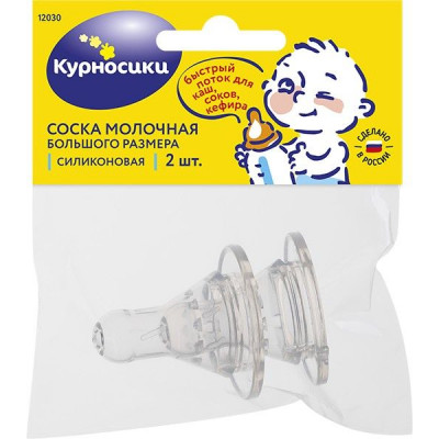 Силиконовая соска Курносики большого размера с X-образным отверстием для каш имеет классическую форму. Подходит ко всем стандартным бутылочкам. Данная форма отверстия оптимальна для кормления кашами и густыми смесями. Тугая соска из медицинского силикона, по форме напоминает материнскую грудь, и успешно моделирует для ребенка процесс ее сосания. Для детей с 6-ти месяцев.