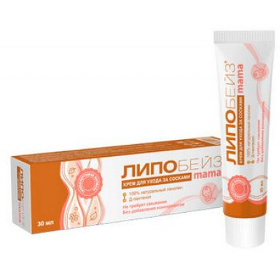 Крем для ухода за сосками ЛИПОБЕЙЗ® мама (LIPOBASE ® mama) специально разработан для ухода за сосками во время кормления грудью. Средство безопасно для младенца. 100% натуральный ланолин - оказывает питательное, увлажняющее, успокаивающее, смягчающее, защитное действие для сухой потрескавшейся кожи сосков. Способствует облегчению болевых ощущений после кормления, помогает устранить сухость, покраснения, раздражения кожи и ускорить заживление повреждений. Плотная текстура крема создает защитный барьер для сосков, что способствует ощущению комфорта. Д-пантенол - стимулирует регенерацию кожи, нормализует клеточный метаболизм, увеличивает прочность коллагеновых волокон. Оказывает регенерирующее действие, питает и смягчает кожу.