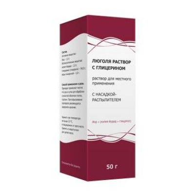 ЛЮГОЛЯ С ГЛИЦЕР. 50Г. Р-Р Д/МЕСТ.ПРИМ. ФЛ. +НАСАДКА РАСПЫЛИТЕЛЬ /ТУЛЬСКАЯ ФФ/