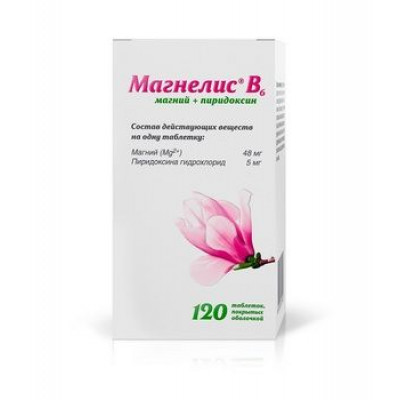 Восполняет дефицит магния. Магний является жизненно важным элементом, который находится во всех тканях организма и необходим для нормального функционирования клеток. Участвует в большинстве реакций обмена веществ, в регуляции передачи нервных импульсов и в сокращении мышц, оказывает спазмолитическое, антиаритмическое и антиагрегантное действие. Организм получает магний вместе с пищей. Недостаток магния в организме может наблюдаться при нарушении режима питания (диета) или при увеличении потребности в магнии (при повышенной физической и умственной нагрузке, стрессе, беременности, применении диуретиков). Пиридоксин (витамин В6) участвует во многих метаболических процессах, в регуляции метаболизма нервной системы. Витамин В6 улучшает всасывание магния из желудочнокишечного тракта и его проникновение в клетки. Содержание магния в сыворотке: - от 12 до 17 мг/л (0,5-0,7 ммоль/л) говорит об умеренной недостаточности магния. - ниже 12 мг/л (0,5 ммоль/л) говорит о тяжелом дефиците магния.